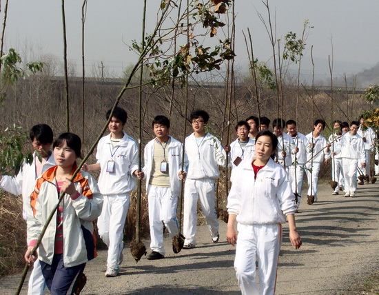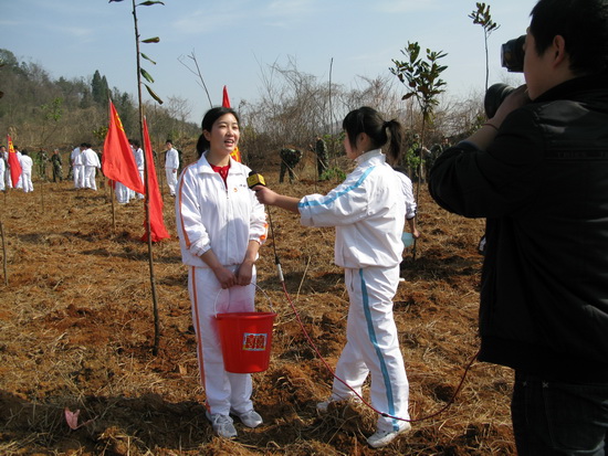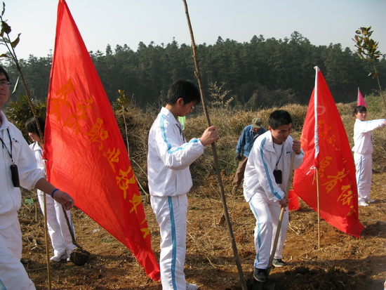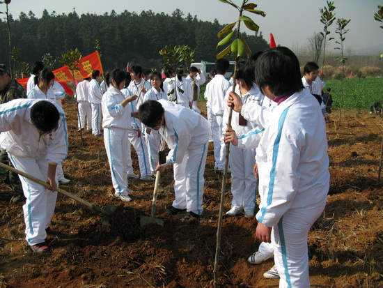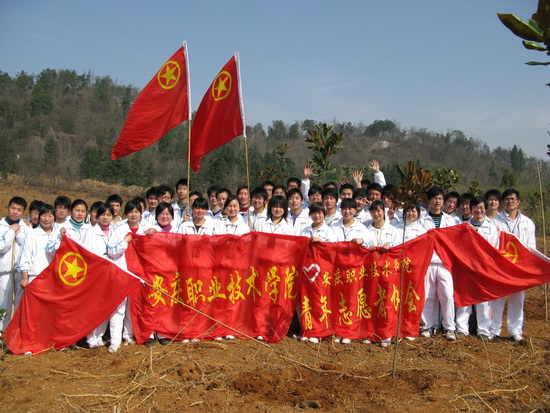 春日迟迟,卉木萋萋;仓庚喈喈,采蘩祁祁。植树节到来之际,人们纷纷走向田野山岗,用种植纪念树、营造纪念林的形式,铭志于树,寄情于林。3月10日,我院青年志愿者在院团委的组织下,积极参加由团市委主办的主题为“珍爱绿色,共建家园”春季义务植树活动。 一大早,同学们戴着团徽、举着团旗、院旗和志愿者旗帜,来到安庆市青少年绿色家园,在院团委许老师的指导下,有秩序地进行植树劳动。大家挥锹动铲,挖坑、取树、栽树、培土、浇水,配合得十分默契。在短短的两个小时里,同学们在原本光秃秃的空地上,种上了一株株广玉兰。虽然一个个满脸沙尘,浑身是土,但人人喜笑颜开;虽然一个个腰酸背痛,满头大汗,但个个激情满怀。看着自己的劳动成果,同学们的脸上露出了满意的笑容,大家纷纷表示,今后要为“植绿、护绿、爱绿、兴绿”的良好社会风尚形成做更多的努力。