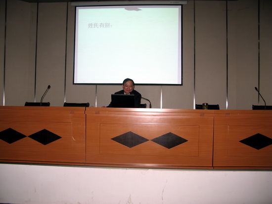 徐北平主任从称谓的产生及演变说起,介绍分析了古代常见称谓,指出称谓的实质,着重说明称谓在今天的借鉴作用。徐主任引用近现代一些文函实例进行赏析,并且列举当代一些有关称谓与大家进行讨论修改。他指出,称谓是我们民族传统文化遗产的一部分,应该用历史唯物主义的观点辨证地对待,称谓运用要有继承,要推陈出新、与时俱进、合乎适宜。 徐主任的报告生动深刻,精彩纷呈,博得了现场师生的阵阵掌声。
