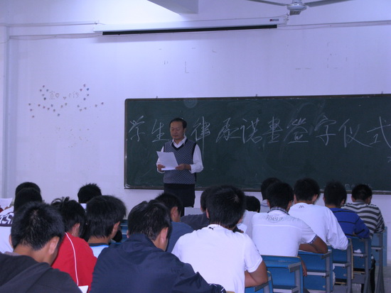 为了增强学生的责任意识和安全意识,引导学生理性思考,达到自我管理、自我教育的目的,我院在2009级新生入学教育环节特别组织开展对学生的自律教育。 9月21日下午,在各系部团总支的具体组织和辅导员的指导下,2009级新生各班开展了《学生自律承诺书》签字活动。新同学们在承诺书上签下自己的名字,郑重地做出承诺,要在今后的学习生活中严格要求自己,自律、自强,自觉遵守法律法规和学校制度,争做“勤学笃行,德技双馨”的学生。