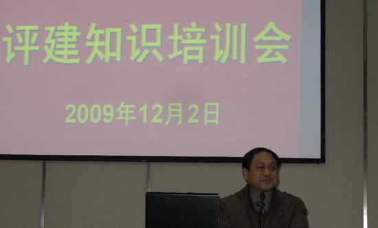 12月2日下午,我院在图文信息中心大报告厅举办评建知识培训会。会议由教务处处长谭维奇主持,院领导余祖文、施运华参加了会议。培训会开始前,学院评建领导小组组长余祖文副院长作了简短的讲话,动员全体师生积极学习评建相关知识。
