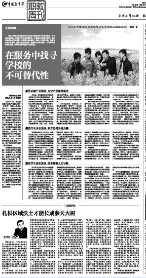 同时,该报在同版配发了著名职业教育评论家王寿斌先生对我院的专题评论《扎根区域沃土才能长成参天大树》。评论认为我院紧密契合区域发展,在服务区域产业建设、服务行业企业发展、服务教师职业发展和服务学生终身发展的过程中,实现了学院事业健康、快速、创新发展。