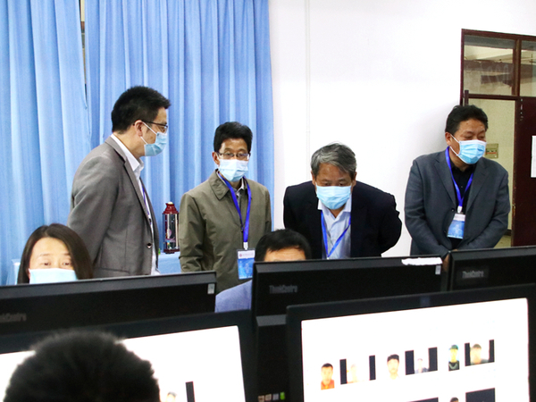 校长毕明生、校党委副书记李克让、校纪委书记陈继平深入监考现场进行巡视督查,招生就业处、教务处、监审处、图文信息中心等部门负责同志陪同。监考现场显示考试网络连接通畅,考生沉着应试,监考老师及工作人员认真负责,通过校考平台对每一位考生的考试过程进行实时监控和全过程录像,线上考试过程平稳有序、秩序井然。