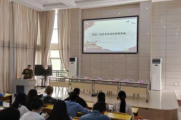 迎江区滨江街道党工委委员、纪工委书记、武装部长许振进行了征兵政策宣讲,鼓励毕业生积极响应党和国家的号召,携笔从戎、参军入伍。