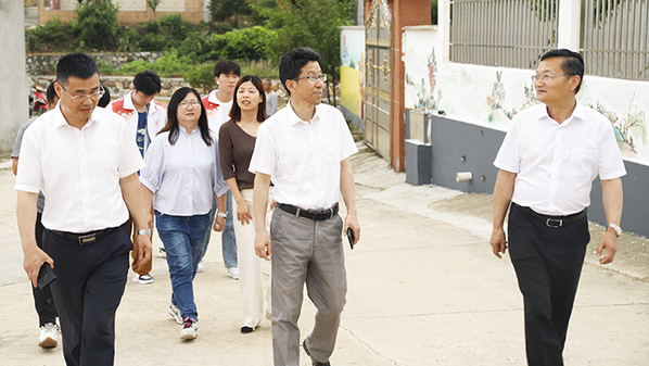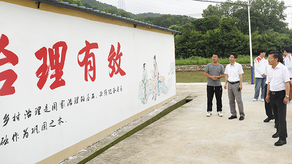 5月30日,beat365中文官方网站校长毕明生赴宜秀区五横乡曰公社区看望信息技术学院承接的乡村振兴墙绘项目正在施工的师生。曰公社区乡村振兴指导员王进、信息技术学院院长疏国会参加。五横乡曰公社区党总支书记程久和陪同。