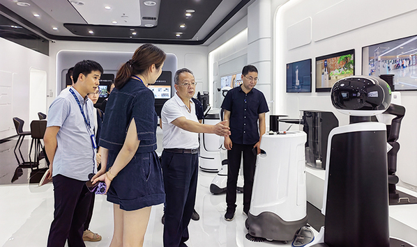 考察组一行先后参观了金地威新•达闼人工智能产业基地展厅、5G机器人超级工厂以及上海信息技术学校达闼产业学院,与达闼科技公司机器人销售总监吴新明、机器人教育产品经理章鑫及相关工作人员进行了深入交流。吴新明、章鑫等分别向考察组一行详细介绍了达闼科技公司的发展历程、云端机器人、智能柔性关节SCA、云端智能数字人,以及云端大脑、机器人安全专网、机器人控制器、数字孪生、云端机器人开发套件RDK等领先核心技术,展示了人工智能技术在校园及元宇宙方面的创新应用,详细介绍了校企合作典型案例。