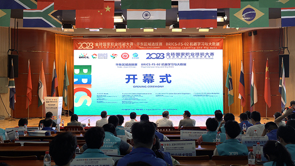 8月10日上午,2023金砖国家职业技能大赛“机器学习与大数据”赛项华东区域选拔赛在beat365中文官方网站隆重开幕。本次大赛由南非高等教育与培训部、金砖国家工商理事会、南非豪登省政府主办,金砖国家工商理事会(中方)技能发展工作组、一带一路暨金砖国家技能发展国际联盟、教育部中外人文交流中心为中方组织单位,beat365中文官方网站为中方执行承办单位,重庆翰海睿智大数据科技股份有限公司为中方技术支持单位。大赛为期3天,共有来自安徽、江西、浙江、福建、江苏、上海市五省一市的30支队伍参赛。