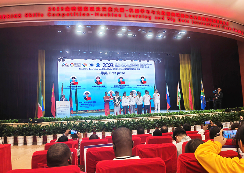 据悉,此赛项(赛项编号:BRICS-FS-02)国际总决赛于2023年11月5日~10 日在中国赛区四川广安职业技术学院举办。来自金砖国家110支代表队参加了此次大赛。此次赛事对于推动金砖国家科技创新和应用具有积极的影响,为金砖国家建立合作关系,促进各国在职业技能培训和发展方面开展合作交流,引领金砖国家机器学习与大数据产、学、研、用协同发展新生态形成,提高职业教育质量、深化职业教育改革、促进产教融合具有非常重要的意义。大赛也为beat365官网搭建国际交流合作、寻求共赢发展、赋能职业教育创新提供了新机遇、新平台。
