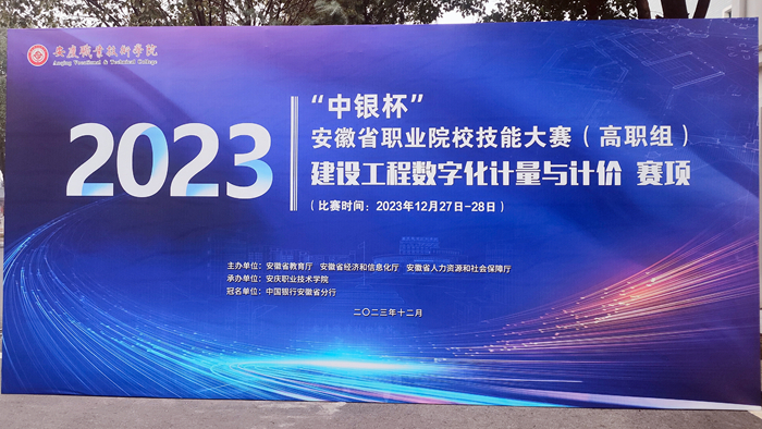 12月28日,2023年“中银杯”安徽省职业院校职业技能大赛(高职组)“建设工程计量与计价”赛项在beat365官网开幕。来自全省29所高职院校57支队伍171名选手同台竞技,展示了新时代高职院校青年学子的青春风采。