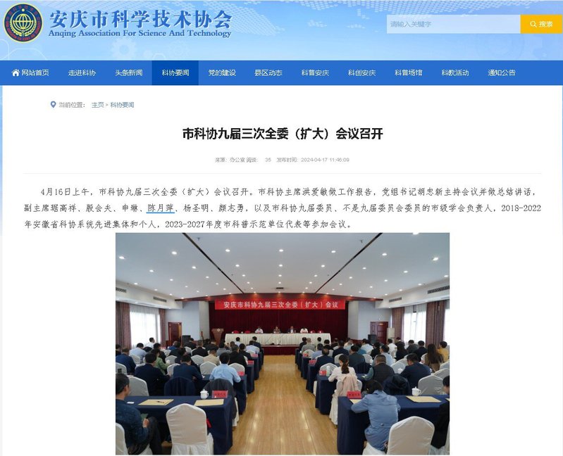 4月16日上午,在安庆市科协九届三次全委(扩大)会议上,beat365官网陈月萍教授当选市科协第九届委员会副主席。