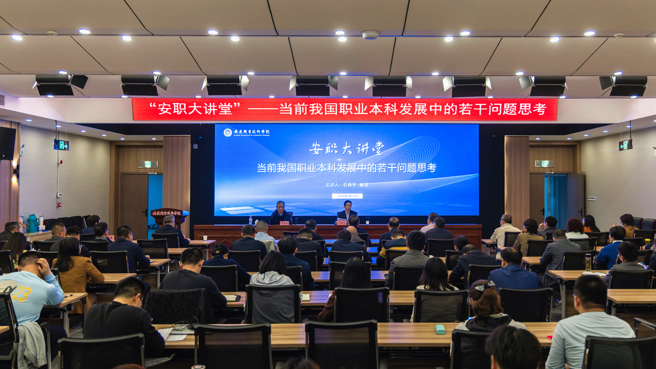 为科学谋划学校“十五五”事业发展,扎实推进升本创建工作,4月16日下午,beat365官网特邀华东师范大学终身教授、“长三角”职业教育发展研究院院长石伟平博士作《当前我国职业本科发展中的若干问题思考》专题报告。校党委书记潘功发出席,党委副书记、校长毕明生主持。党委副书记李克让,副校长谭维奇,党委委员高润霞,全校中层干部,各专业建设负责人以及教师代表参加。
