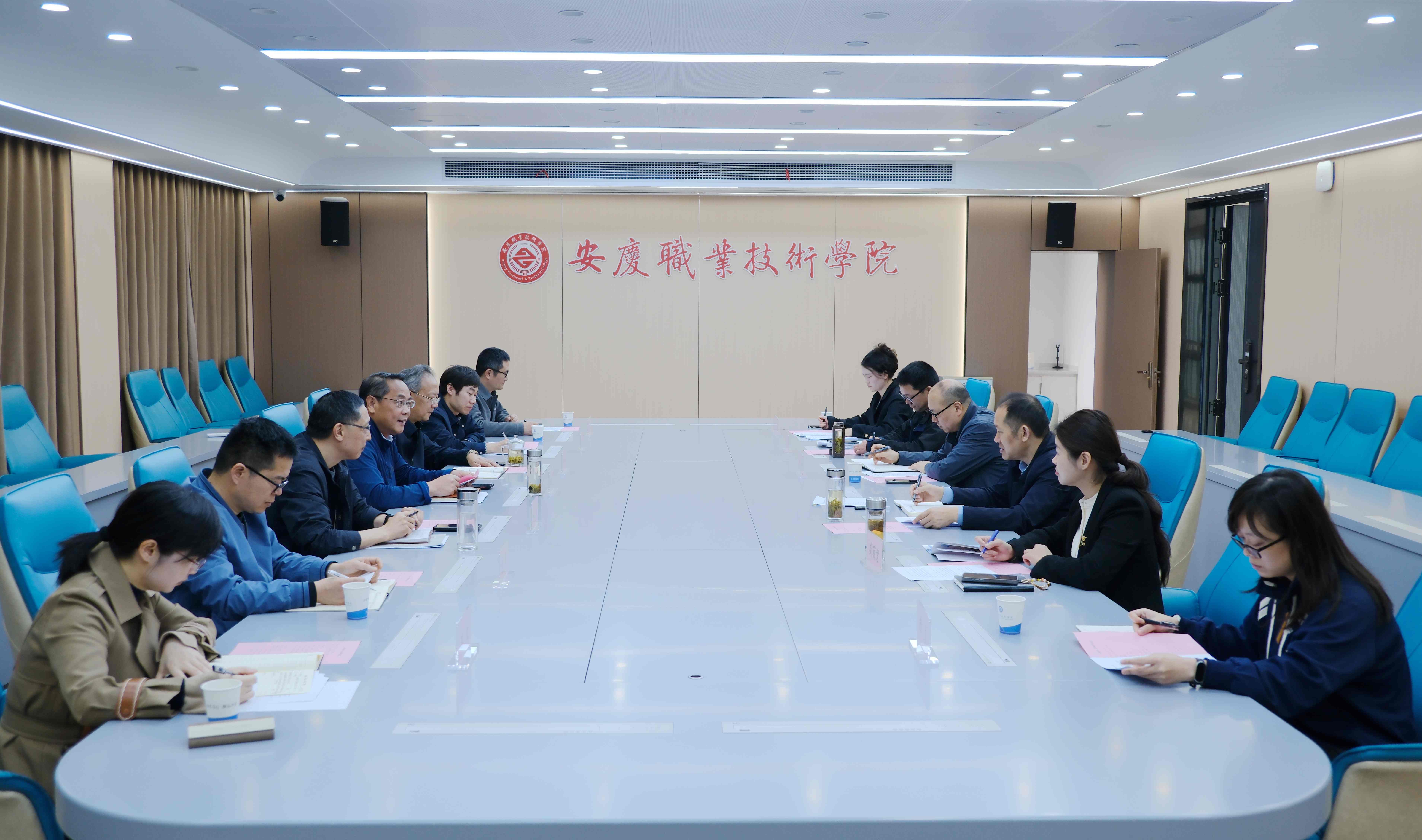 4月16日上午,安庆市科技局局长鲁长江一行六人来beat365官网座谈交流。校党委书记潘功发,党委委员、副校长谭维奇出席座谈会。校企合作办、科技处、农林与服装学院、建筑工程学院相关负责人参加座谈。