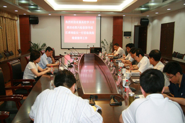 7月7日下午,省属高校学习实践活动第六指导检查组江孝鸿组长一行,来我院检查学习实践活动开展情况并指导工作。学院领导高开甲、孙晓峰、张旺牛、余祖文、施运华、毕明生、方天祜陪同检查。 在专题汇报会上,院党委副书记、院长、院学习实践活动领导小组组长孙晓峰代表学院向指导检查组汇报了学院发展基本情况和学习实践活动的各项工作开展情况。 江孝鸿组长对我院学习实践活动开展情况给予了充分肯定。他认为,学院“评估争优创示范,科学发展上水平”的活动主题选的准而实,抓住了学习实践活动与中心工作的有机结合点,为活动取得实效奠定了良好基础。就我院学习实践活动下一阶段工作,他强调,做好整改落实阶段的工作,是检验是否真正深入学习实践科学发展观的关键,关系到能否真正实现“党员干部受教育、科学发展上水平、人民群众得实惠”的总要求。学院要全力搞好整改落实工作,确保学习实践活动出成果、见实效,切实为教职工办实事,使教职工真正得到实惠。 高开甲书记在汇报会上对学院学习实践活动第三阶段的工作提出了明确要求。他强调,学院一定要按照上级部署和要求,扎实推进学习实践活动,努力在解决学院当前突出问题上取得新突破、新成效。 院学习实践活动办公室有关同志参加了汇报会。