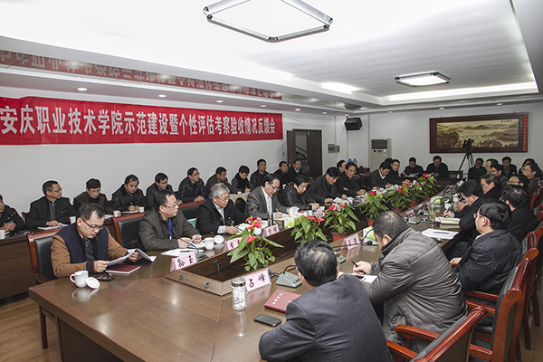 储常连代表省教育厅对此次评估验收工作给予了肯定。他希望专家组进一步帮助我院总结提炼个性特色,突出地方性发展方向。希望安庆市委市政府进一步加大对我院的支持力度,特别是加快债务化解、师资队伍建设、教师公寓建设等问题的解决,为学院发展提供强有力的保障。他要求我院认真梳理吸收专家组提出的意见和建议,加快整改落实,努力建设地方技能型高水平大学。