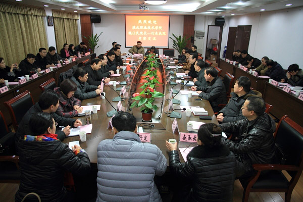 1月14日下午,淮北职业技术学院院长魏仕民、副院长姬兴华一行31人来我院考察交流。我院院长孙晓峰、副院长谭维奇热情地接待了客人。