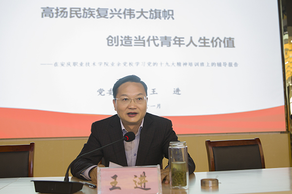 11月15日下午,院党委书记王进为基层党组织负责人及院党校第二十二期培训班学员作题为《高扬民族伟大复兴旗帜,创造当代青年人生价值》的十九大精神宣讲报告。