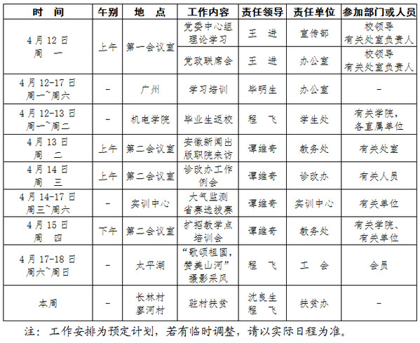 2020-2021学年第二学期第7周(4.12-4.18)工作安排