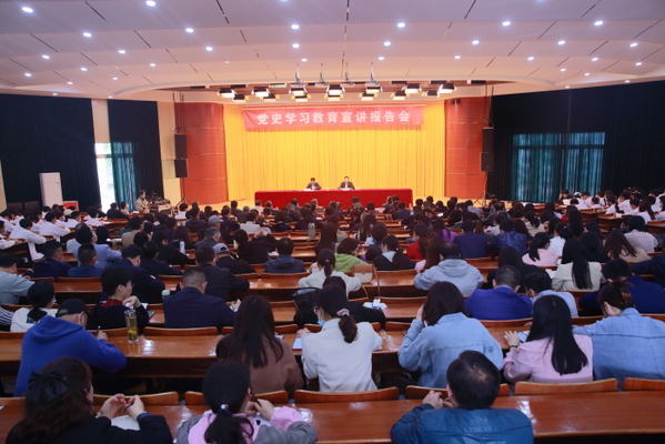 4月28日下午,beat365官网在图文信息中心一楼报告厅举办党史学习教育宣讲报告会。校党委书记王进作主题宣讲。党委副书记、校长毕明生主持报告会。党委委员谭维奇、李克让、沈良生、程飞和学校全体党员参加学习。