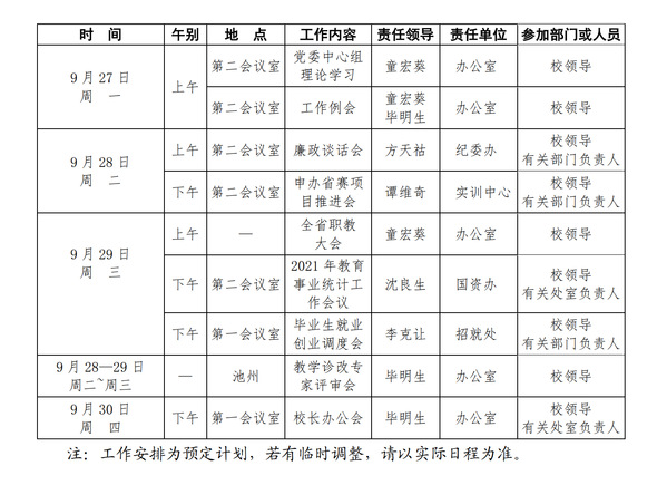 2021-2022学年第一学期第5周(9.27-10.3)工作安排