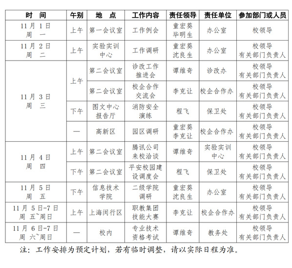 2021-2022学年第一学期第10周(11.1-11.7)工作安排