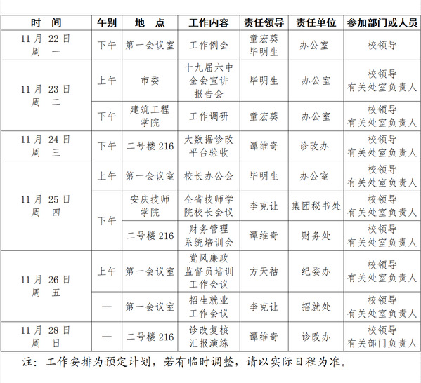 2021-2022学年第一学期第13周(11.22-11.28)工作安排