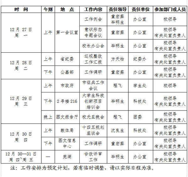 2021-2022学年第一学期第18周(12.27-1.02)工作安排