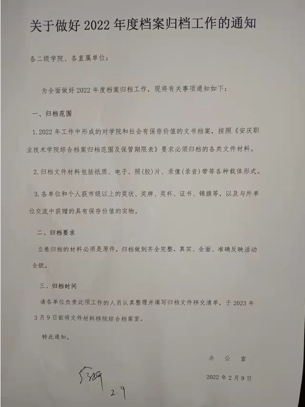 关于做好2022年度档案归档工作的通知