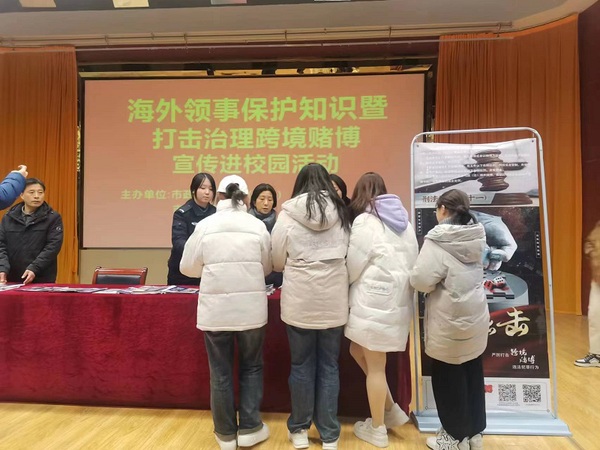 12月18日下午,由安庆市政府办(外办)、安庆市公安局、beat365中文官方网站共同主办的“海外领事保护知识暨打击治理跨境赌博进校园”宣传活动在图文信息中心一楼报告厅举行。