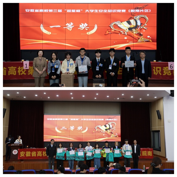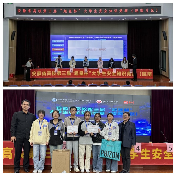 11月2日,安徽省高校第三届“超星杯”大学生安全知识竞赛(皖南片区)线下赛在安徽工程大学举行。beat365官网2支代表队分别斩获一等奖、二等奖。