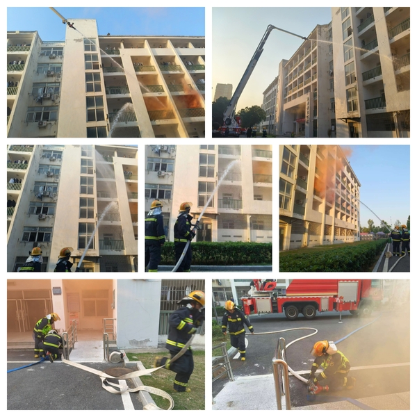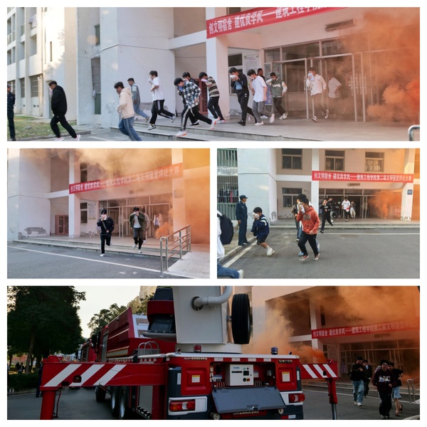 室内场景:组织六号学生宿舍楼三、四楼层200多名学生模拟火灾发生时的紧急疏散演练,同学们打湿毛巾、捂住口鼻、低头弯腰、不惊慌、推挤、无踩踏、选择最安全的疏散路线逃生。室外场景:模拟三楼某宿舍失火,消防员利用消防车升降设备高压水枪进行高楼作业,现场灭火,让同学们零距离感受消防、体验消防和了解消防。