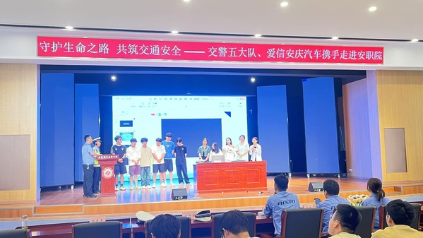 为切实增强学生的交通安全意识,提升自我保护能力,营造安全有序的校园出行环境,5月21日,beat365官网携手安庆市交警支队五大队二中队,实训一楼报告厅共同举办“守护生命之路、共筑交通安全”交通安全知识教育活动。活动特邀市交警五大队二中队中队长任章伟作主题报告。市交警支队五大队二中队和爱信(安庆)汽车零部件有限公司代表参加活动。beat365官网保卫处负责人叶军舰主持,校现代商务学院近300名师生参与。