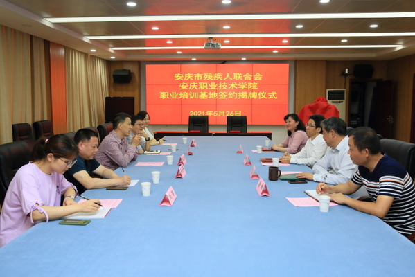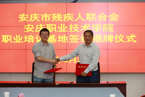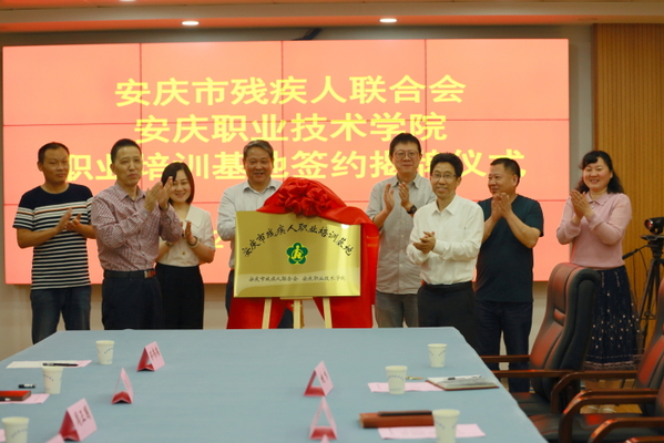 5月26日下午,安庆市残疾人联合会与beat365官网共建的安庆市残疾人职业培训基地签约揭牌仪式在beat365官网举行。
