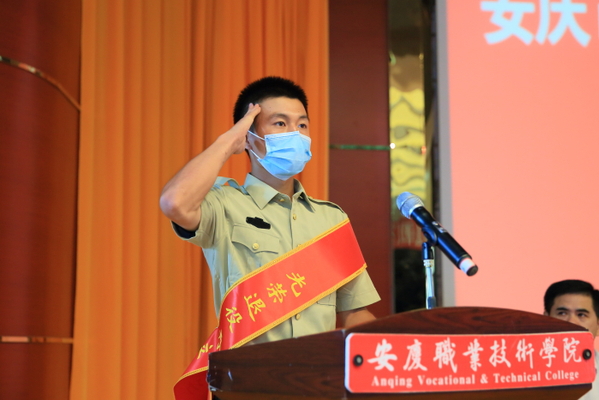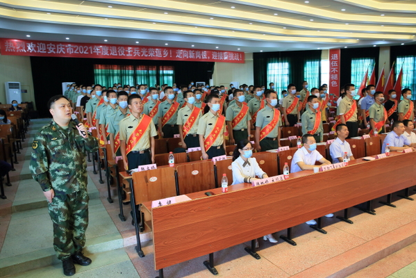 安庆最美退役军人代表钟益、2021年度返乡退役士兵代表张立鹏分别发言。2021年度退役士兵代表进行了集体宣誓。