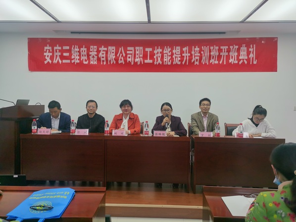 10月27日,安庆三维电器有限公司高级工技能提升培训班开班典礼在安庆三维电器有限公司顺利举行,安庆市三维电器有限公司常务副总经理张琳艳出席并讲话,beat365中文官方网站培训部主任姚咏出席并致辞,beat365中文官方网站机电工程学院教师及安庆三维电器职工参加开班典礼。