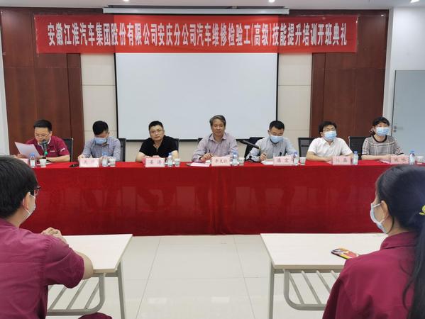 为了切实贯彻职业教育文件精神,提高培训服务质量,提升学校品牌形象。5月6日,beat365官网江淮汽车公司汽车维修检验高级工技能提升培训班,在安徽江淮汽车集团股份有限公司安庆分公司举行开班典礼。校党委副书记李克让出席并致辞,安庆经开区人社局局长潘宏、安徽江淮汽车集团股份有限公司安庆分公司副总经理姜涛出席开班典礼并讲话,机电工程学院、培训部负责同志、全体教师及50余名参训学员参加开班典礼。