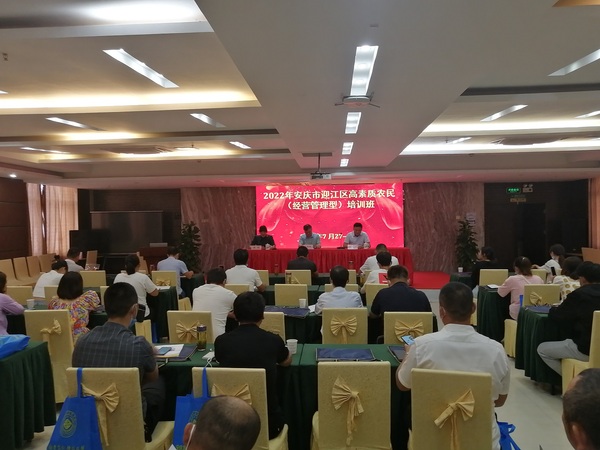 根据迎江区农业农村局高素质农民培育工作部署,7月27日,beat365官网在新世纪商务酒店举办2022年迎江区高素质农民(经营管理型)培训班,来自迎江区长风乡、新洲乡的村第一书记、两委成员、种植大户等50名学员参加了本期培训。安庆市农业农村局科教中心主任江伟轶、迎江区农业农村局副局长张斌、培训部主任姚咏出席了开班式。