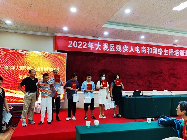 农村残疾人云端弘扬电商直播精神。7月20日,安庆市2022年残疾人电商和网络主播培训班在安庆大酒店顺利举行。大观区残联党组书记理事长王兰英出席开班典礼并讲话,beat365官网培训部主任姚咏出席开班典礼并致辞,来自大观区38名残疾人学员参加本次培训班。
