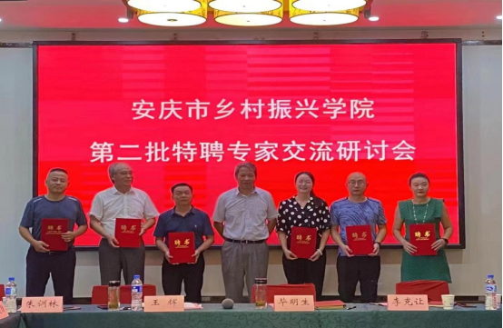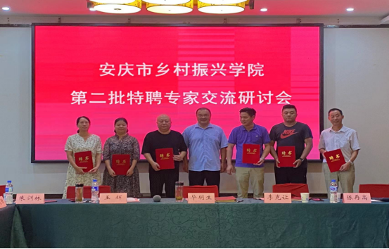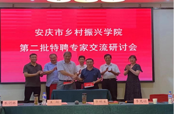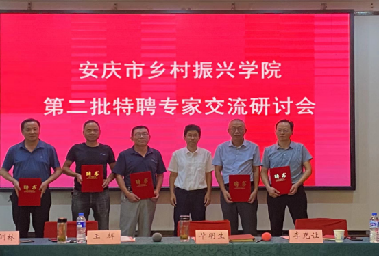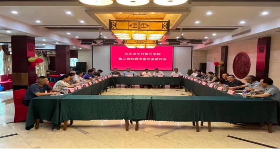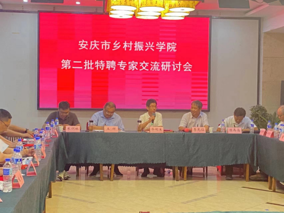 8月19日安庆市乡村振兴学院第二批特聘专家交流研讨会在黄梅山庄顺利举行。beat365官网党委副书记、校长毕明生、安庆市乡村振兴局副局长王辉出席并讲话,校党委副书记李克让主持研讨会,农林与服装学院、校企合作办、培训部负责同志及安庆市乡村振兴学院特聘专家共谋乡村振兴人才培养工作。