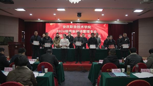 阚言华对农业经济管理专业(农业学分银行试点)的农民学生表示祝贺。一是饱含幸运。作为首批参与全省农民学分银行试点的学员,扮演着开创者的角色,展现了勇气和决心,为农业从业者们树立榜样;二是胸有情怀。学员们作为潜山市三农领域的佼佼者,仍愿意投入时间,参与课堂学习,为事业注入新活力,这种精神令人敬佩,不仅为国家粮食安全与农产品供给做出贡献,更是顺应时代潮流,助力当地产业发展和乡村振兴;三是孕育希望。乡村振兴已上升为国家战略的背景下,学员们肩负着新的历史使命,为乡村振兴和农业强省贡献自己的力量。