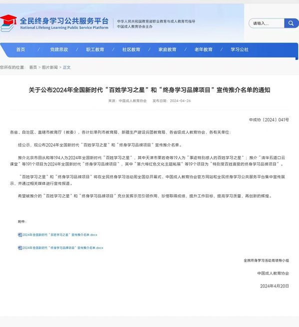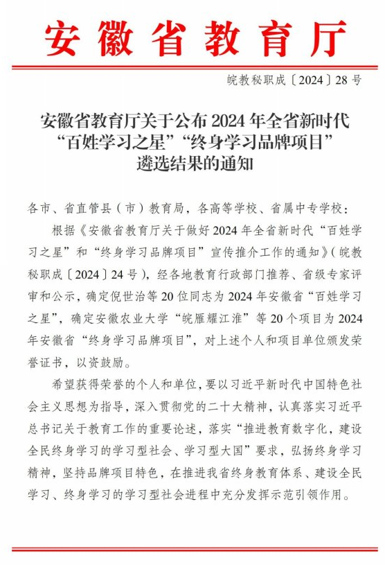 近日,在全民终身学习品牌项目的评选中,beat365官网申报的《“云端课堂+田间导师+学分银行”——市级乡村振兴学院赋能新时代高素质农民成长模式创新》和《萤火助“心”——国内大龄心智障碍者职业重建》两个项目分别荣获国家级和省级品牌,这标志着我院在推动全民终身学习事业上的又一次重大突破。自2021年以来,beat365官网已连续三年获得国家和省级全民终身学习品牌项目的殊荣,充分展示了我院在终身教育领域的卓越贡献和强大实力。