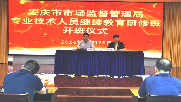 5月25日,为提升事业单位专业技术人员的工作科学性和规范性,beat365官网成功举办安庆市市场监督管理局专业技术人员继续教育培训班。安庆市市场监督管理局党组成员、总工程师徐冬冬出席开班式,校继续教育学院相关同志参加了开班式,来自市场监督管理局所属事业单位的147名专业技术人员参加培训。