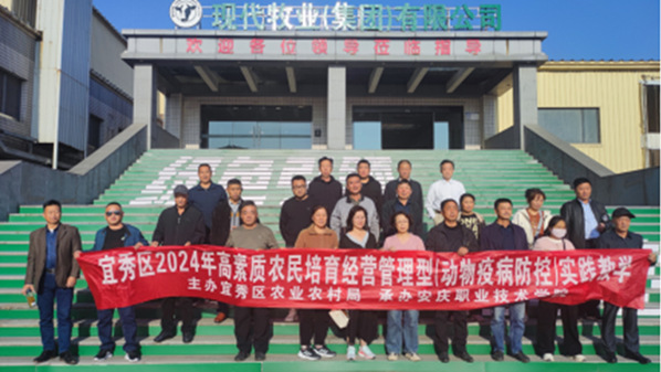 10月30日下午,学员们怀揣着求知若渴的心情,开启了实训考察的第一站。他们首先来到了现代牧业五河有限公司,这里现代化的养殖设施、科学的养殖管理流程以及严格的动物疫病防控体系让学员们大开眼界。在参观过程中,公司相关负责人详细介绍了奶牛养殖过程中的疫病监测、预防接种、环境消杀等一系列防控措施,学员们认真聆听、不时提问,对大型养殖场的疫病防控有了更为直观且深入的认识。