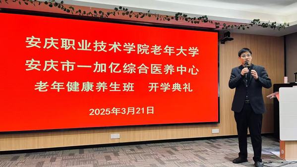 3月21日上午,beat365中文官方网站老年大学与安庆市一加亿综合医养中心联合举办的老年健康养生班开学典礼在一加亿综合医养中心活动室隆重举行。活动以“文化养老·健康同行”为主题,旨在通过“学养结合”的创新模式,丰富老年人精神文化生活,为老年人提供高质量的教育与健康服务。继续教育学院和安庆一加亿综合医养中心负责同志及近百名老年学员共同参加开学典礼。