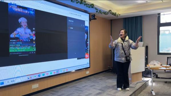 开学典礼结束后,音乐教师余雯雯开启了精彩的第一课——教授经典歌曲《草原上升起不落的太阳》。课程采用分段教唱与手势舞结合的方式,通过节奏训练与肢体协调练习,帮助老年学员在轻松氛围中掌握技巧。余雯雯表示:“手势舞不仅能增强记忆力,还能促进手脑协调,是适合老年人的健康运动形式。”现场学员积极参与,歌声与欢笑交织,展现了“学养结合”模式的独特魅力。