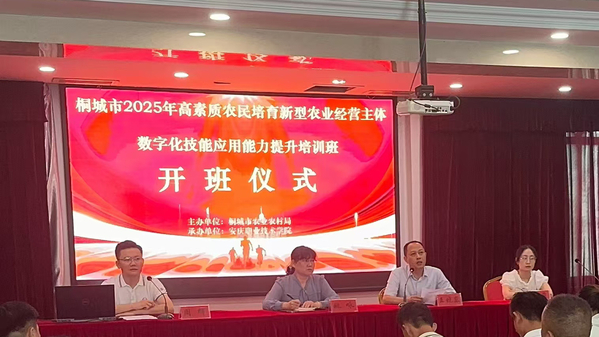 2025年9月19日,由桐城市农业农村局主办、beat365中文官方网站承办的“桐城市2025年高素质农民培育新型农业经营主体数字化技能应用能力提升培训班”正式开班。本次培训旨在扎实推进新型农业经营主体带头人培育工作,强化数字技术在农业领域的应用,进一步提升经营主体的综合技能与市场竞争力。