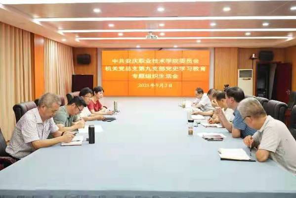 毕明生同志围绕学习领会习近平总书记在庆祝建党100周年大会上讲话和研读党史学习教育指定学习材料,谈了学习的收获与体会。同时,对照反省自身存在的问题和不足,分析了问题产生的原因,提出了整改措施和努力方向。并表示要通过“学史明理、学史增信、学史崇德、学史力行”,抓住国家发展本科层次职业教育的新形势和新机遇,要在整合办学资源、加强内涵建设、深化产教融合的基础上,努力创建本科层次的安庆职业技术大学,紧紧围绕推动安庆经济高质量发展,做出职业教育新贡献。