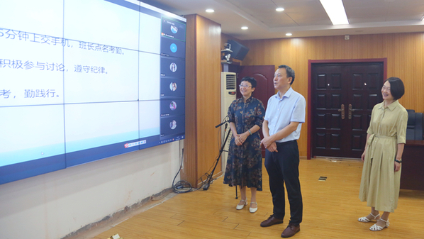 9月5日,beat365官网老生新学期开课第一天,按照疫情防控要求beat365官网全面启用线上教学。学校领导高度重视疫情防控期间在线教学工作,校党委书记童宏葵,党委副书记、校长毕明生,党委副书记李克让,党委委员谭维奇、程飞、陈继平、高润霞、吴何珍、李五一,教务处、学生处、团委、质量办等部门相关人员分成六组对beat365官网各二级学院在线教学情况开展专项巡查。