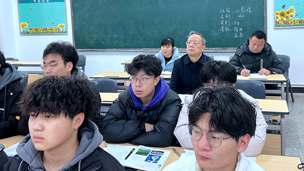 校领导聚精会神地听课,并不时做着笔记,详细记录授课内容,撰写教学评价和意见建议。课后校领导与任课教师进行了交流,对任课教师教学态度、工作热情和知识储备给予了充分肯定,并就教学内容、教学方法、师生互动等环节进行了深入探讨。