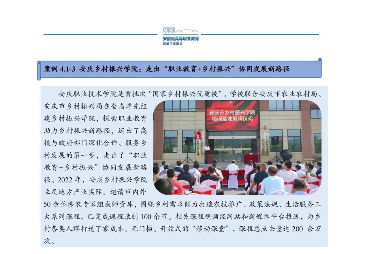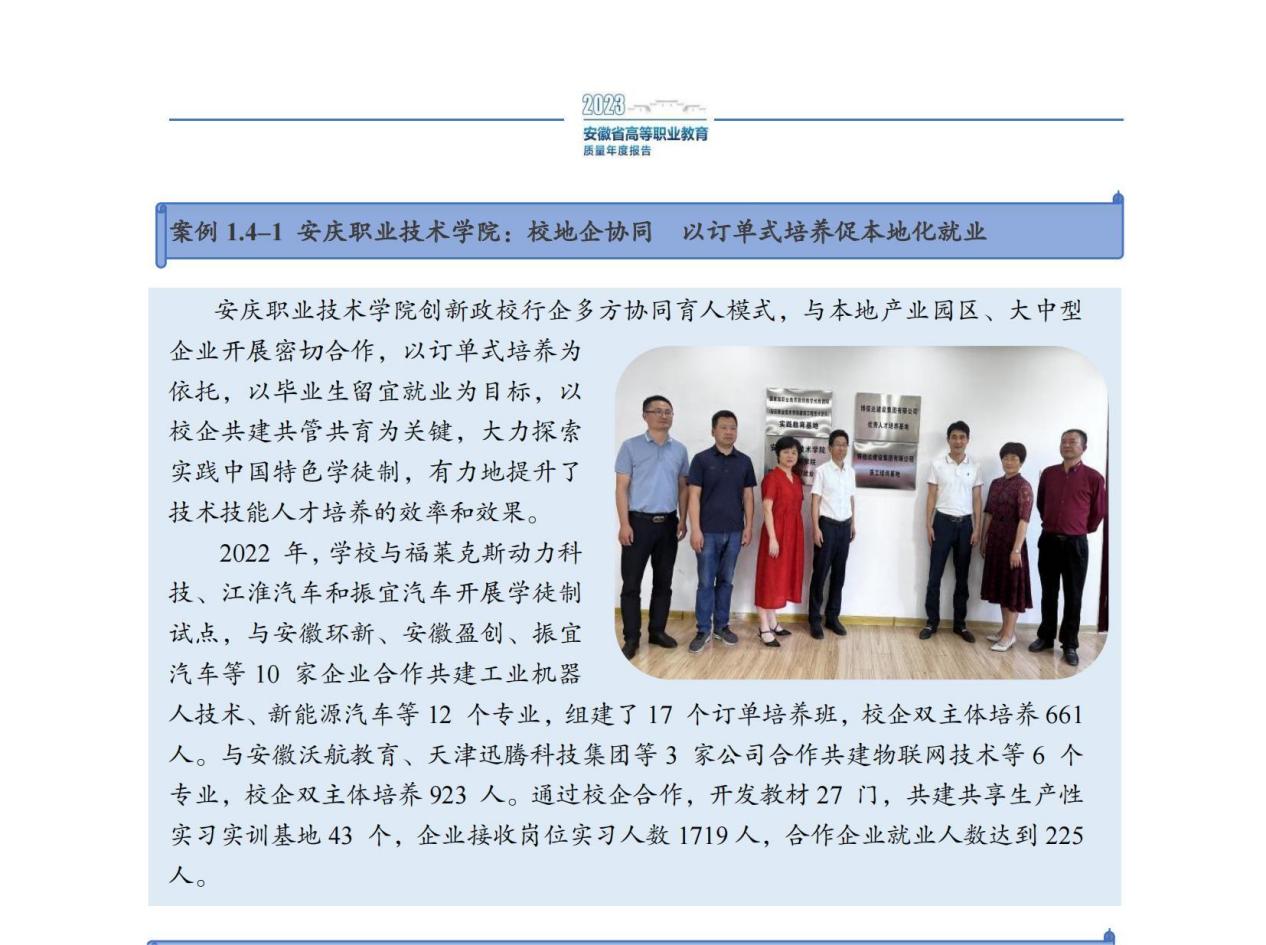 入选《2023安徽省高等职业教育质量年度报告》的典型案例:
