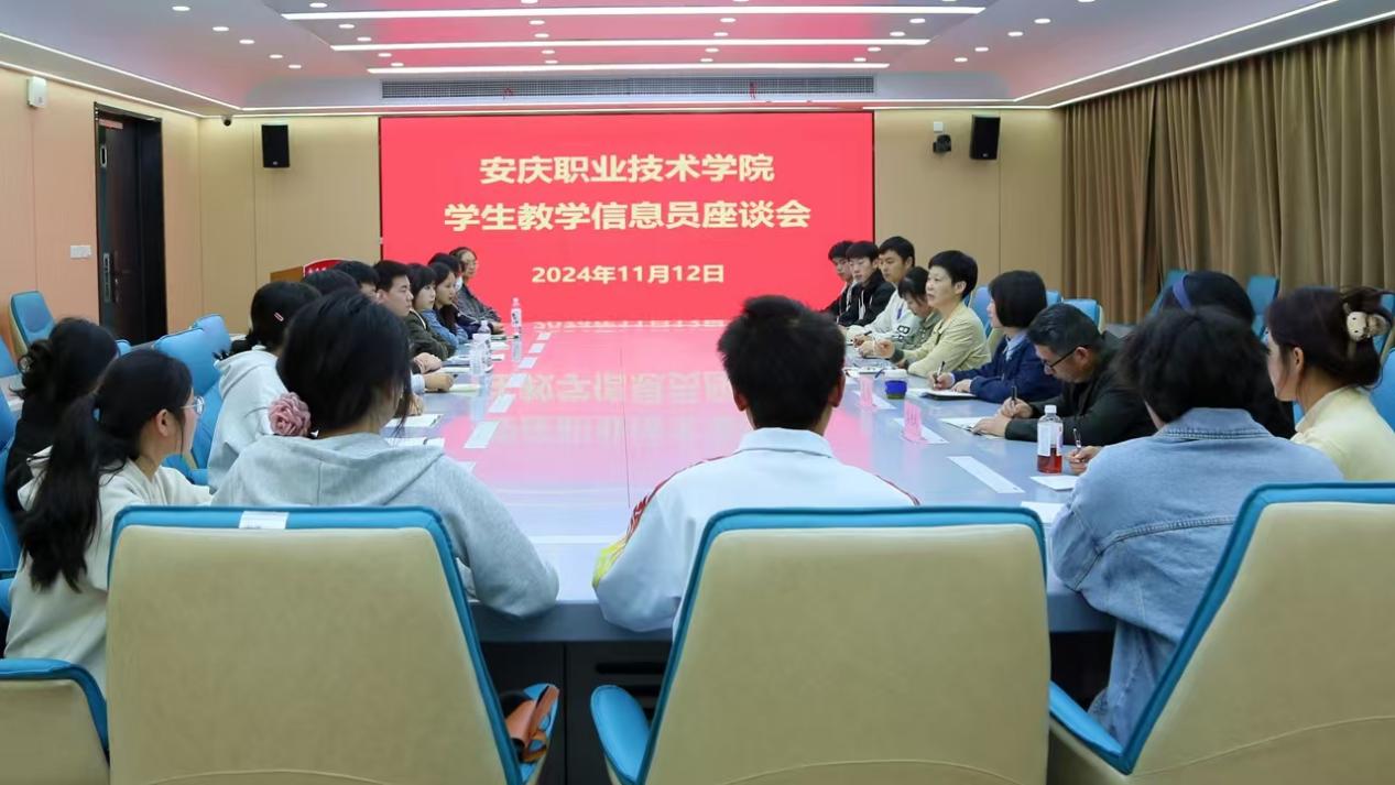 11月12日下午,beat365官网在综合楼425会议室召开了学生教学信息员座谈会,校党委委员吴何珍出席会议,教学督导与质量管理办公室和教务处相关负责同志、各二级学院学生教学信息员代表参加会议。