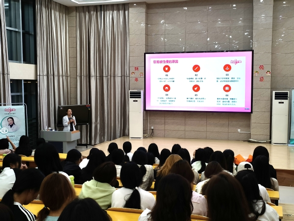 此次活动邀请安庆第一人民医院妇产科主任医师马丽担任主讲。马丽结合大学女生的身心特点和大学女生妇科健康调研数据,以自身多年临床经验,科普了性传播疾病预防及防止受到侵害的措施等。通过数据分析与图片展示,帮助女生打破“谈性色变”的认知壁垒,强调“预防优于治疗”的健康理念。